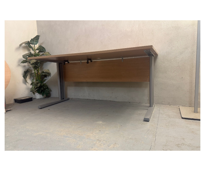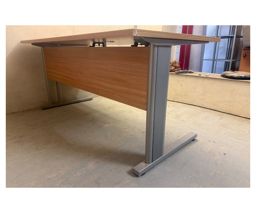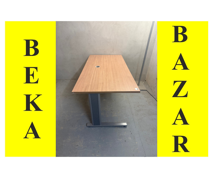 Nabízíme k prodeji kancelářský PC stůl v dekoru dub. Stůl má kovové nohy, které mají vyrovnávací nožičky. Z boku mají nohy plastový kry, který umožnějí schovat protažené kabely. Deska stolu má záspleku na kabeláž a pod deskou jsou držáky kabelů. Pod deskou je krycí deska nohou. Stůl je v dobrém stavu.