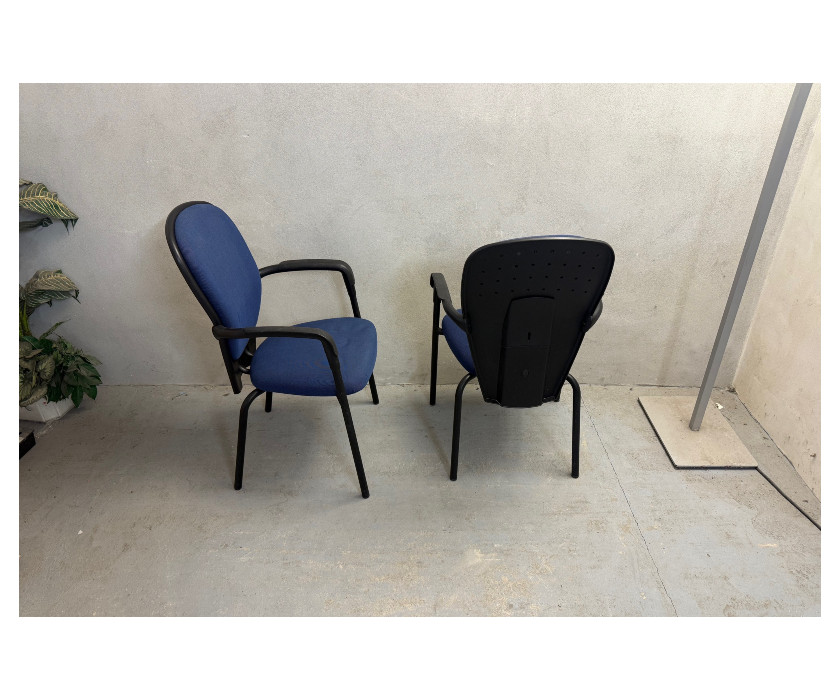 K prodeji nabízíme kancelářskou přísedící židli modré barvy. Židle je od výrobce značky Kinnarps. Židle je stohovatelná, má kovovou konstrukci černé barvy, polstrování je modré, područky jsou plastové. Židle v dobrém stavu .