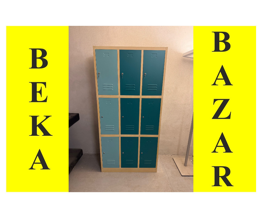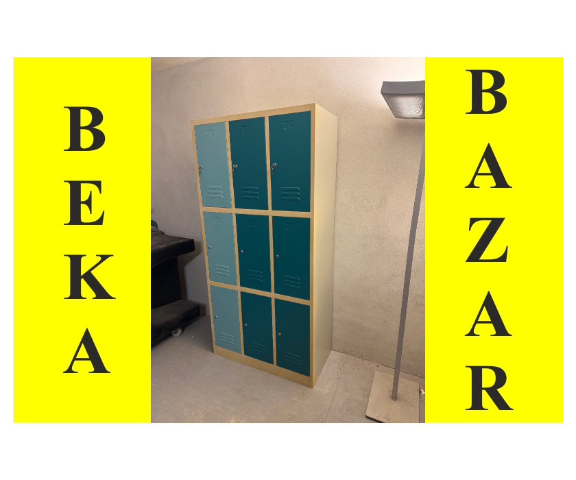 K prodeji nabízíme plechovou šatní skříň s 9-ti boxama. Skříň má ke všem dvířkám klíče, má plechový sokl a je ve velmi dobrém stavu.