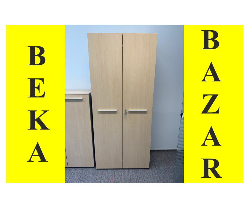 K prodeji nabízíme kancelářskou skříň značky Meroni. Skříň je ve světlém dekoru a má šedé boky. Dveře mají hliníkové rukojeti a mají klíč. Uvnitř skříně jsou 4 police a skříň má vyrovnávací nožičky.