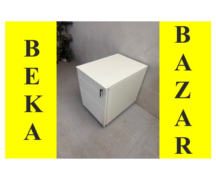 Nabízíme k prodeji kancelářský kontejner na kolečkách. Kontejner je celoplechový v bílé barvě. Celkem má 4 šuplíky, první je plastový úzký na drobné věci a zbytek plechové. Některé šuplíky mají klíč.