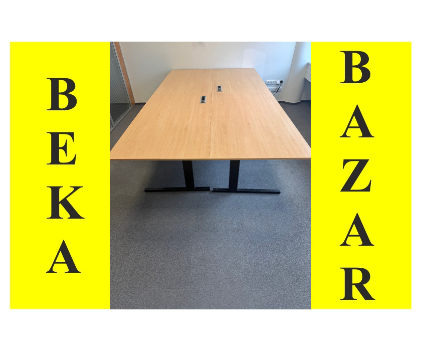 K prodeji nabízíme kancelářský zasedací stůl ze 4 dílů. Stůl je od výrobce značky Techo a je v dekoru buk. Konstrukce je kovová a nohy stolu mají vyrovnávací nožičky. Deska je silná 1,8 cm a v desce 2x vyklápěcí přípojka k elektrice. Stůl je v dobrém stavu.