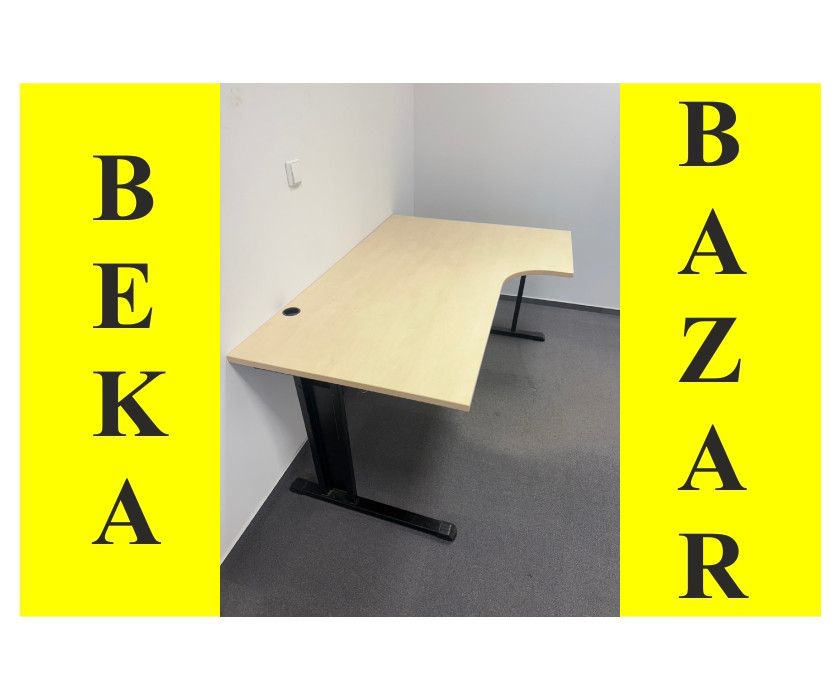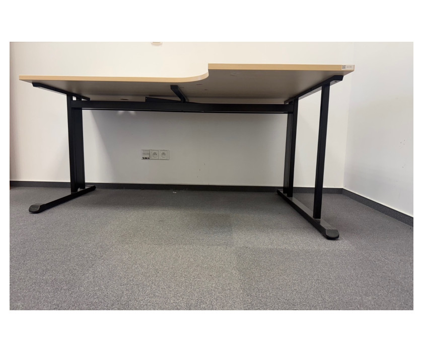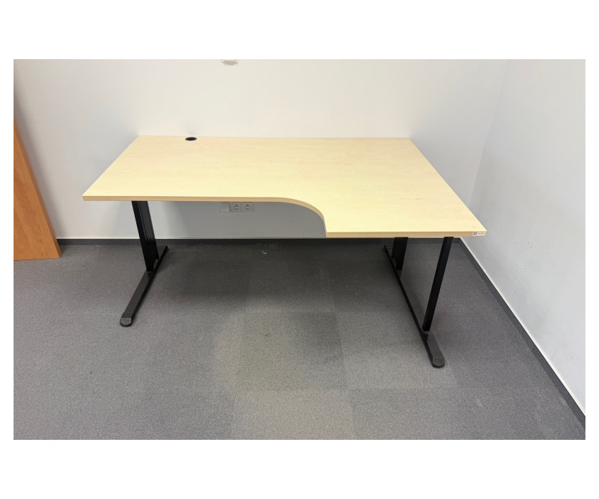 K prodeji nabízíme Rohový PC stůl do L na pravé straně. Stůl je ve světlém dekoru s černou kovovou konstrukcí. Nohy mají vyrovnávací nožičky. V desce stolu je záslepka na kabely a deska je silná 2,5 cm. Stůl je v dobrém stavu.