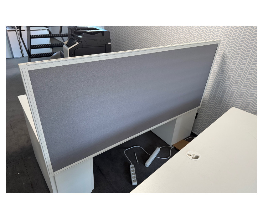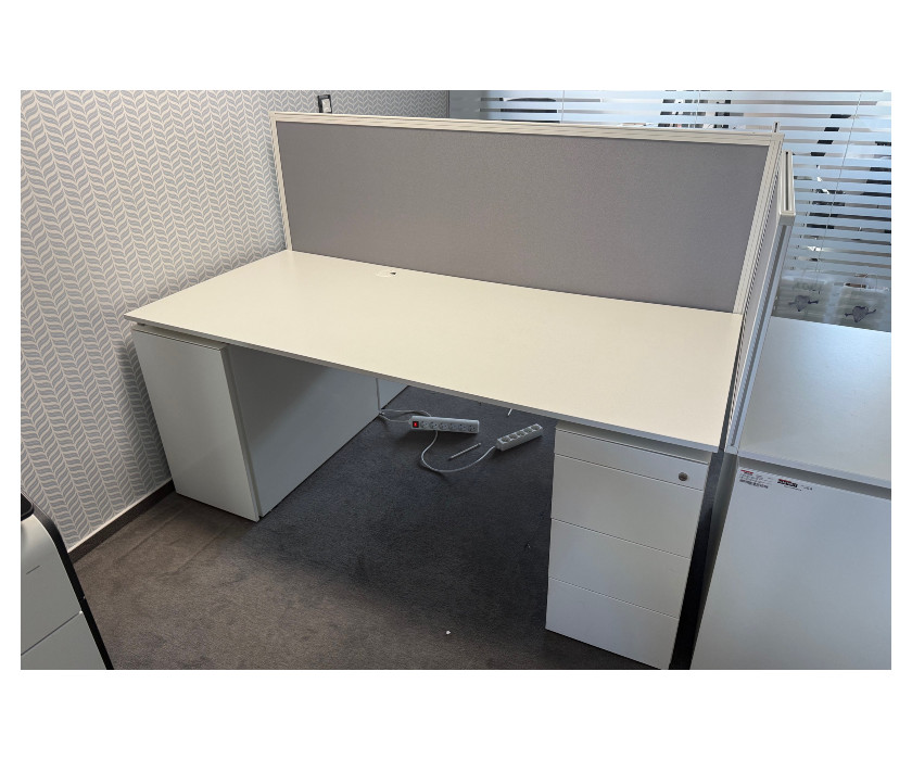 • Bílý PC stůl s kontejnerem a elementem, s paravanem