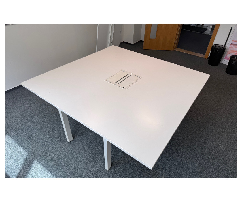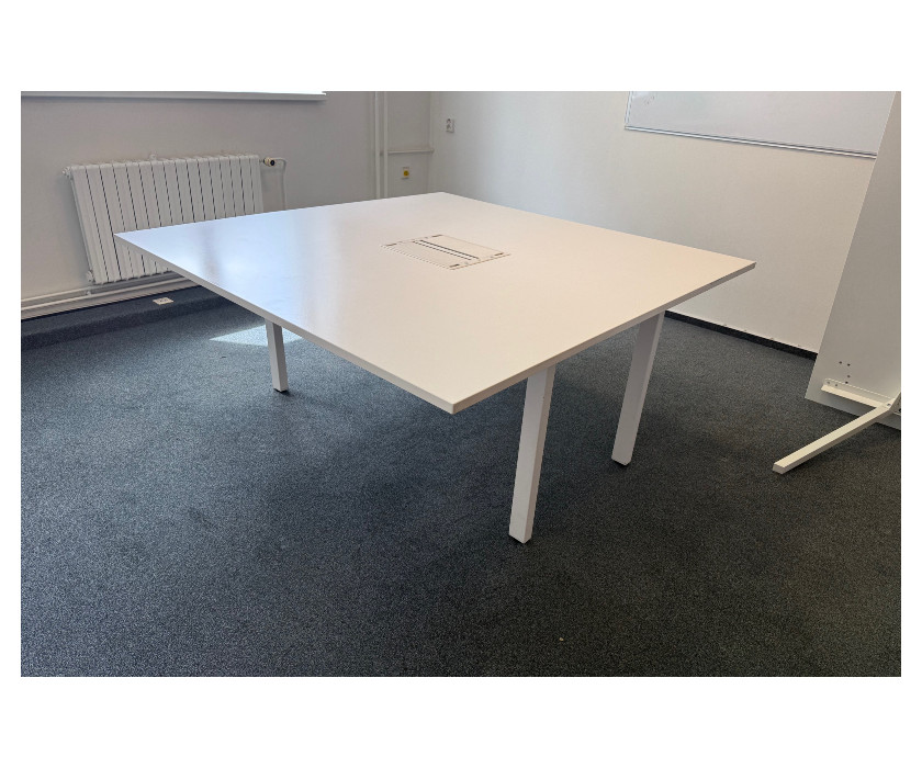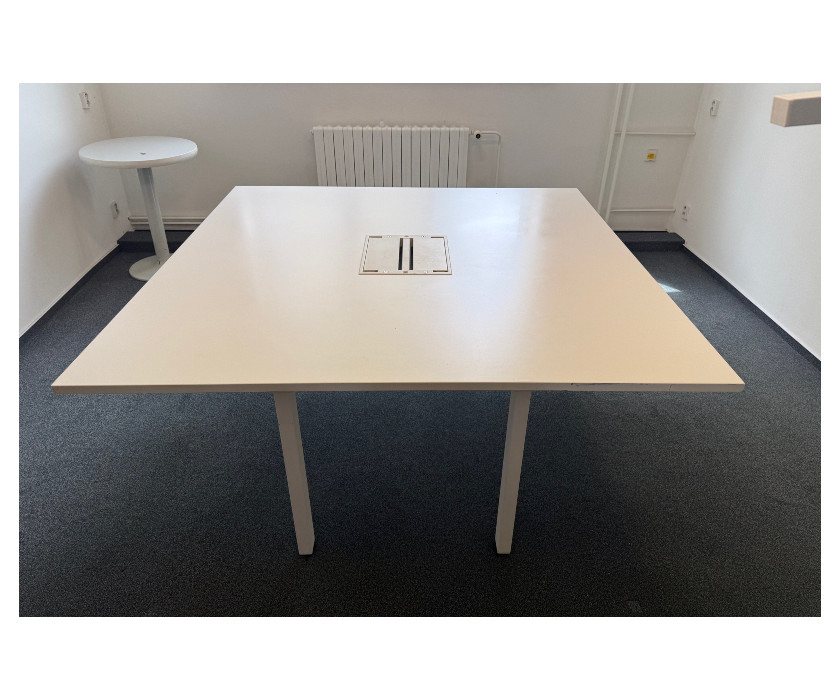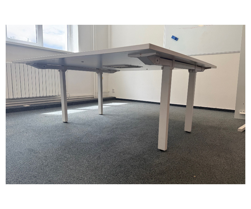 K prodeji nabízíme kancelářský bílý dvojstůl . Stůl má kovovou konstrukci, nohy stolu mají vyrovnávací nožičky. Deska stolu je silná 2,5 cm a uprostřed jsou záslepky na kabely. Stůl je v dobrém stavu.