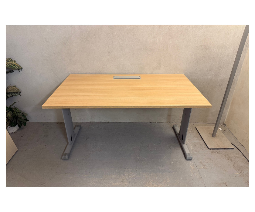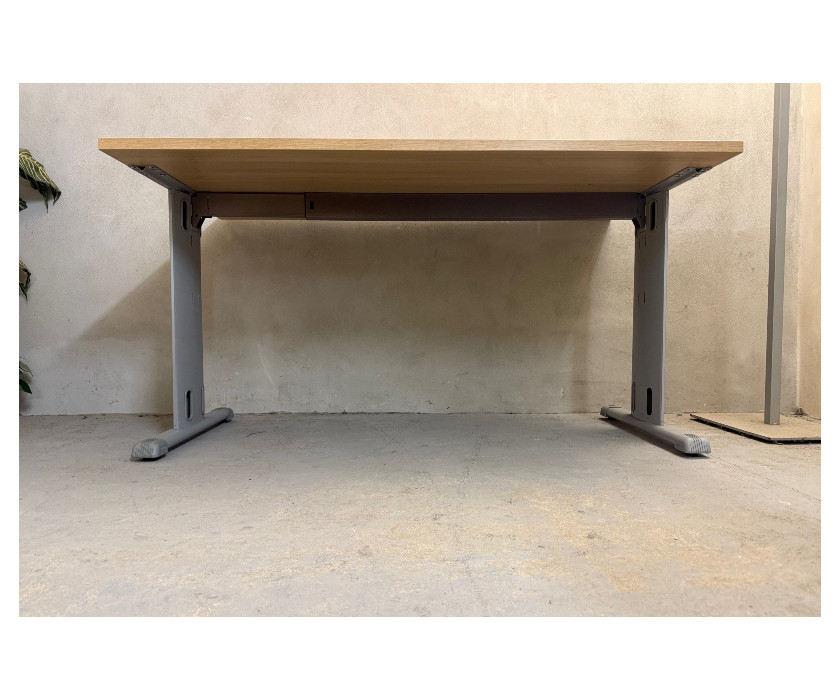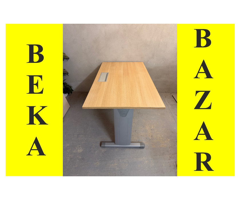 K prodeji nabízíme kancelářský PC stůl od výrobce značky LAS. Stůl je v dekoru akát, má kovovou konstrkuci a nohy mají vyrovnávací nožičky + plastové krytky proti poškrábání podlahy. Deska stolu je pevná, silná 2,5 cm a v desce stolu je hliníková záslepka pro kabeláž. Pod deskou jsou držáky kabelů. Stůl je v dobrém stavu.