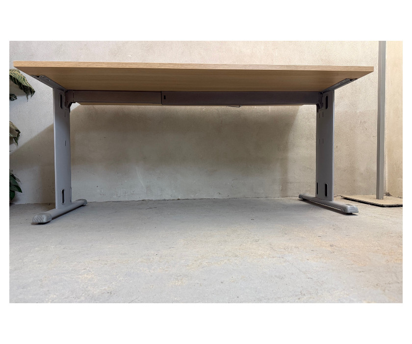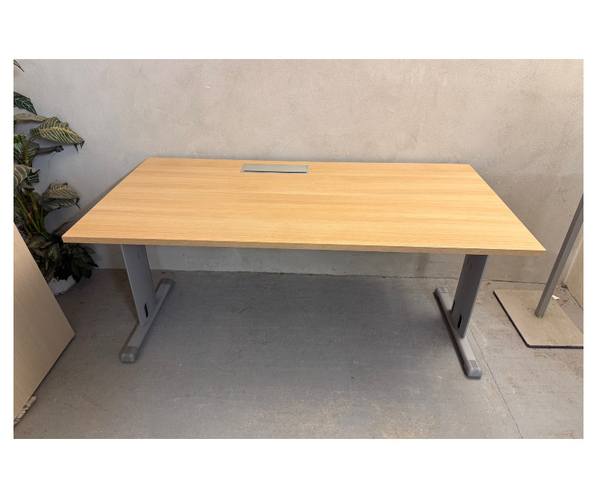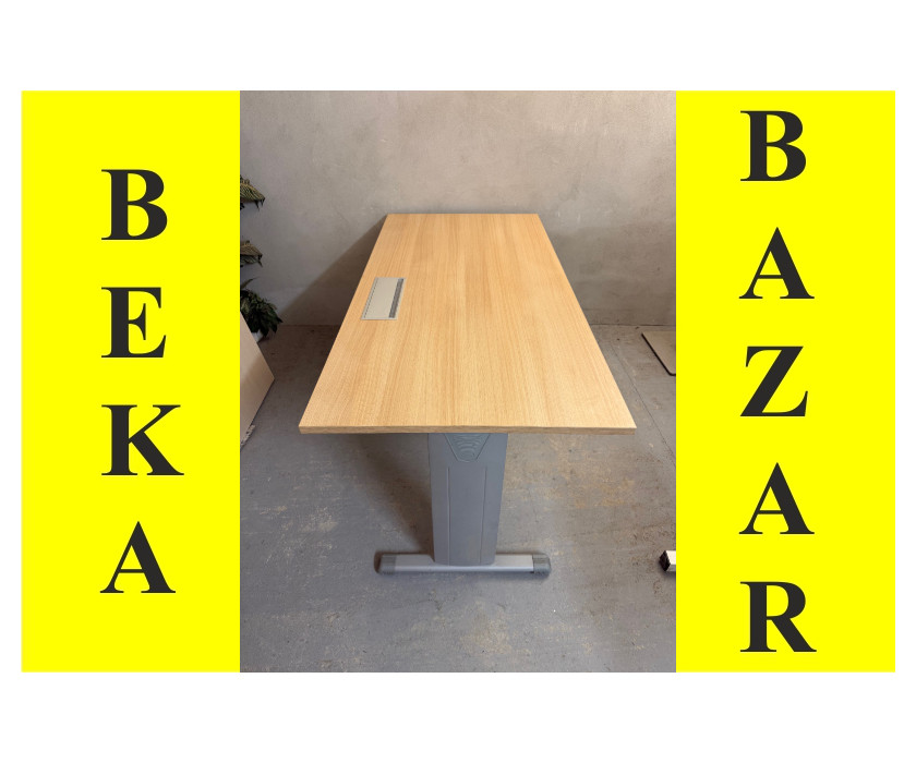 K prodeji nabízíme kancelářský PC stůl od výrobce značky LAS. Stůl je v dekoru akát, má kovovou konstrkuci a nohy mají vyrovnávací nožičky + plastové krytky proti poškrábání podlahy. Deska stolu je pevná, silná 2,5 cm a v desce stolu je hliníková záslepka pro kabeláž. Pod deskou jsou držáky kabelů. Stůl je v dobrém stavu.