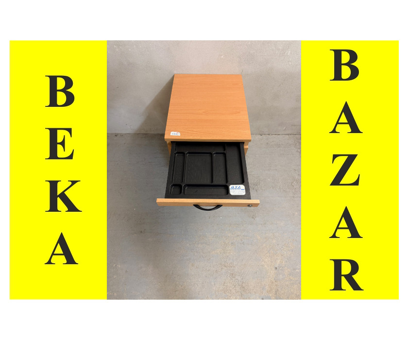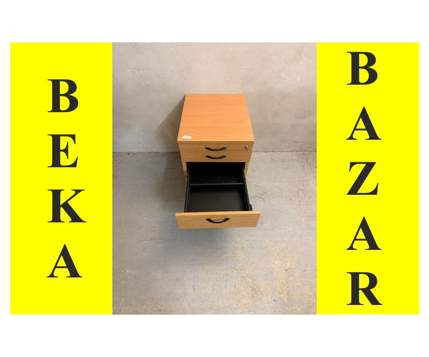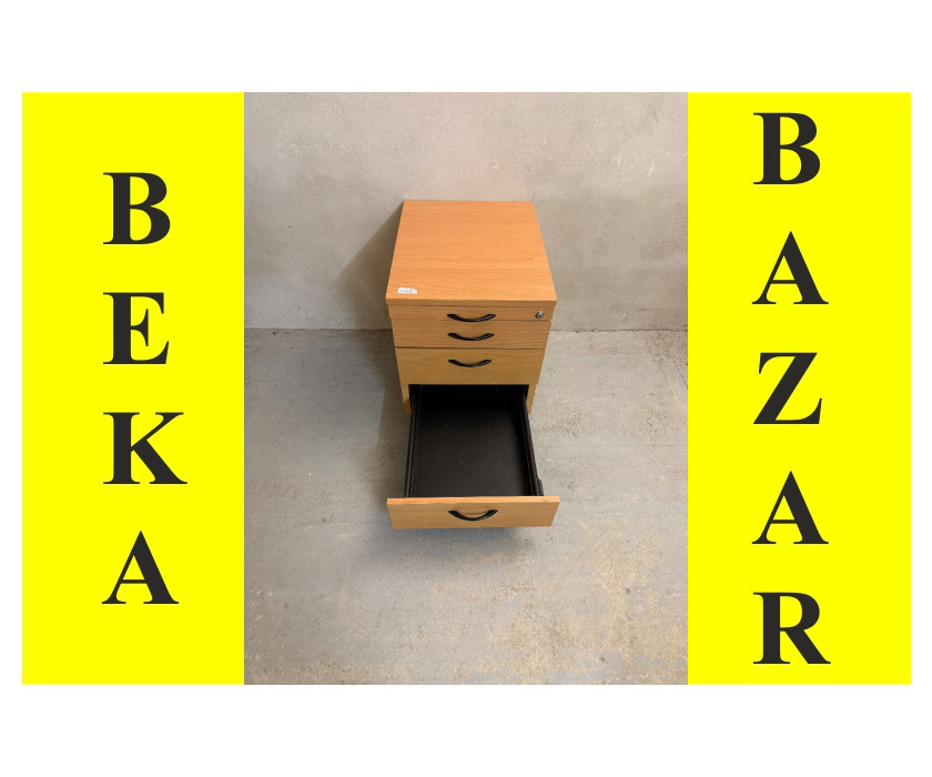 Nabízíme k prodeji kancelářský kontejner v dekoru buk. Kontejner má 4 šuplíky, všechny z plastu. První šuplík je úzký na drobné věci. Kontejner má kolečka s aretací, plastové rukojeti a některé z dostupných mají klíč.