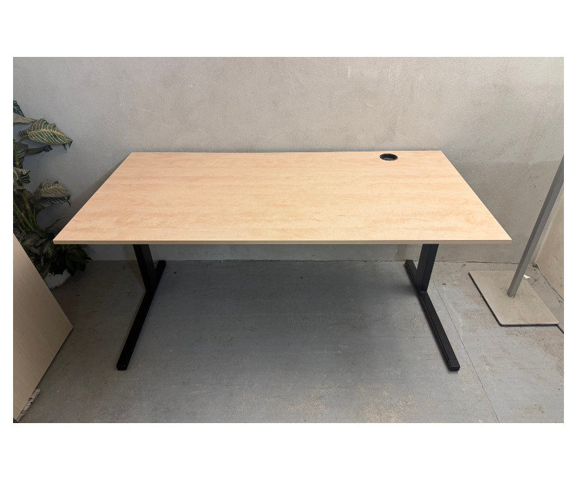 K prodeji nabízíme kancelářský PC stůl v dekoru hruška, od výrobce značky Techo. Stůl má černou kovovou konstrukci, nohy stolu mají vyrovnávací nožičky. Deska je silná 1,8 cm a v desce je jedna záslepka na kabeláž. Pod deskou je držák kabelů. Celkově je stůl v dobrém stavu.