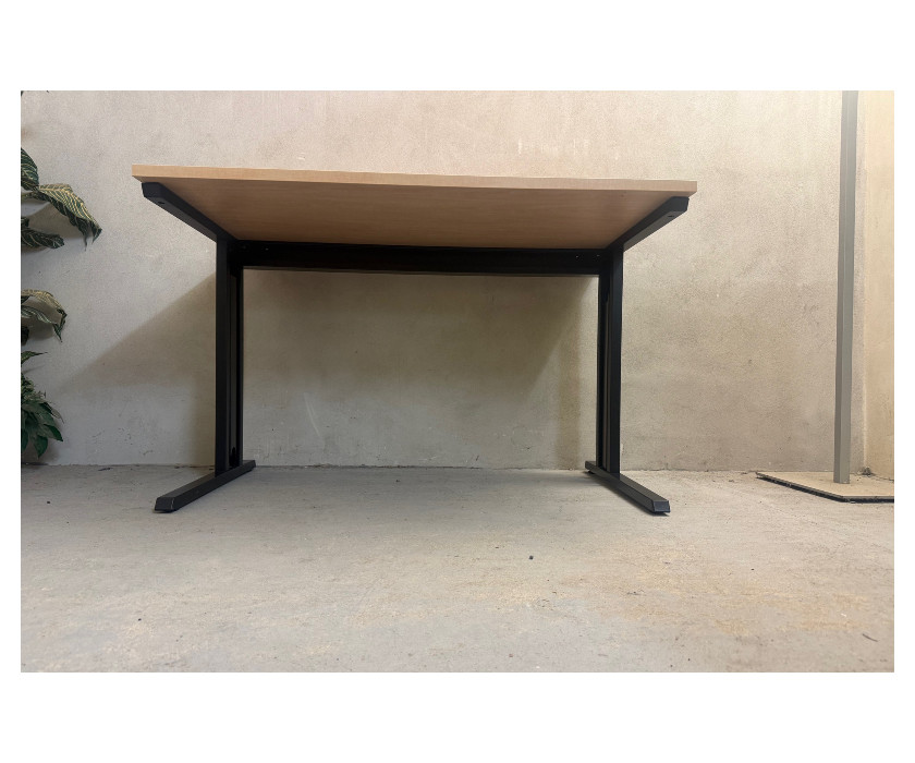 Nabízíme k prodeji kancelářský PC stůl v dekoru hruška. Stůl má černou kovovou konstrukci. Nohy stolu mají vyrovnávací nožičky. Deska stolu je silná 2,5 cm, pod deskou je držák kabelů.
