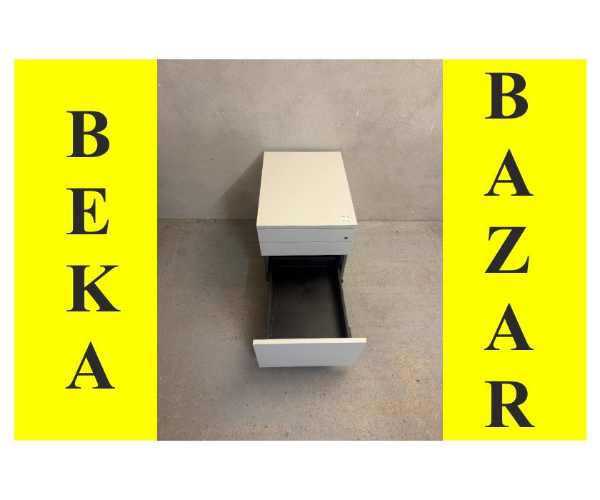 K prodeji nabízíme kancelářský kontejner pod stůl. Kontejner značky Martela a v šedém dekoru. Kontejner má 3 plastové šuplíky a některé jsou dostupné s klíčem. První šuplík úzký na drobné kancelářské věci. Kolečka kontejneru mají aretaci. Celkově je kontejner v dovrém stavu.