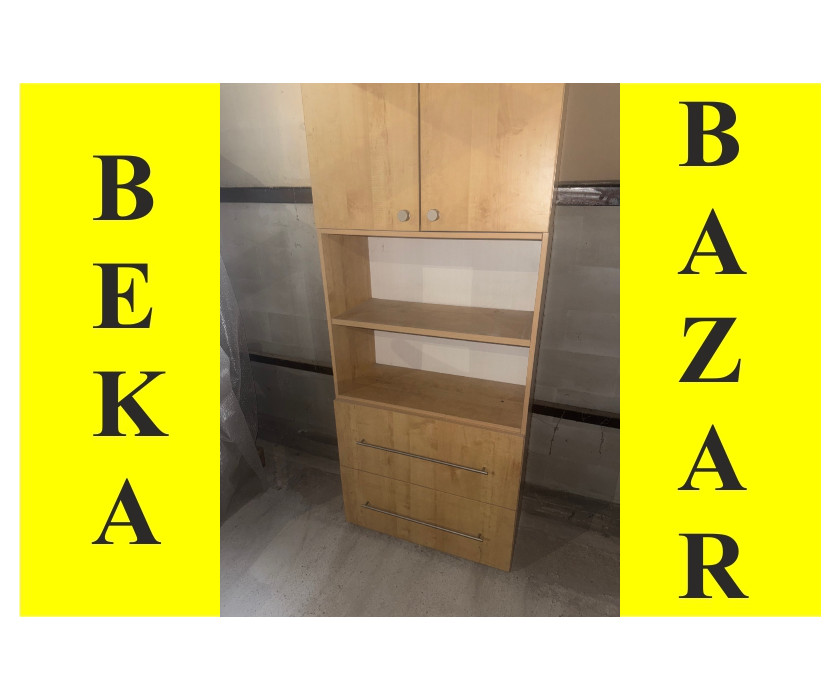K prodeji nabízíme kancelářskou 3 dílnou , dělenou skříň v dekoru hruška. Skříň má vrchní část s policemi a dveřmi , které jsou bez zámku. Prostřední část tvoří čistě jen regálová část , tedy 1 police a spodní část jsou 2 šuplíky s rukojetmi . Šuplíky mohou být i na závěsné šanony. Celkově je skříň v dobrém stavu.