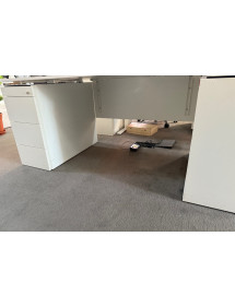 Biely PC stôl s kontajnerom a elementom, s paravánom