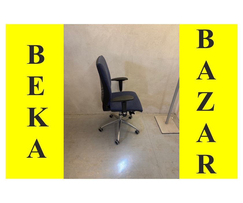 Na predaj ponúkame kancelársku kolieskovú stoličku modrej farby. Polstrovanie je semišové, konštrukcia má 5-bodový kovový kríž. Podrúčky sú výškovo nastaviteľné, rovnako tak chrbtová opeka sa dá nastaviť a podsedák. Stolička v dobrom stave.