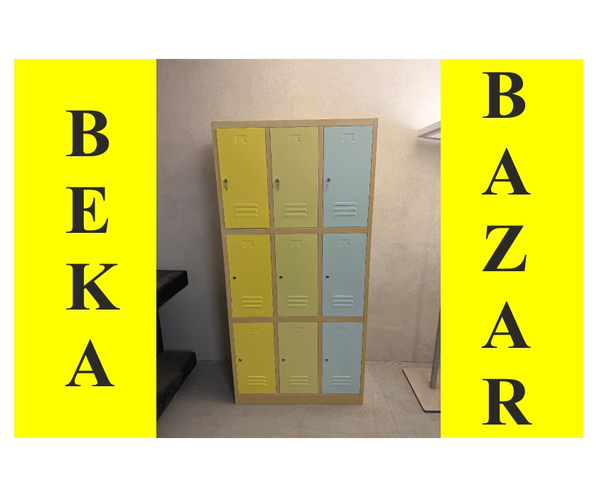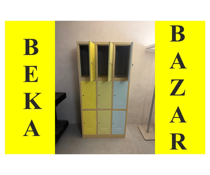 Na predaj ponúkame plechovú šatníkovú skriňu s 9-timi boxami. Skriňa má ku všetkým dvierkam kľúče, má plechový sokel a je vo veľmi dobrom stave.
