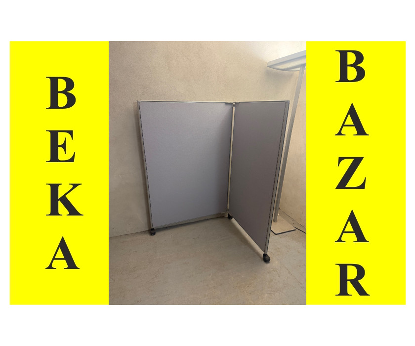 Ponúkame na predaj šedú zástenu na kolieskach. Zástena je do L - je to v podstate paraván na kolieskach. Konštrukcia hliníková, výplň je drevo s látkou. Dlhšia časť má šírku 100 cm, kratšiu časť 80 cm. Zástena je v dobrom stave.
