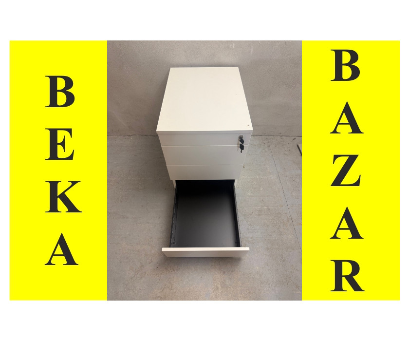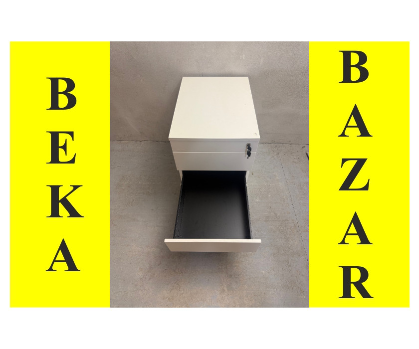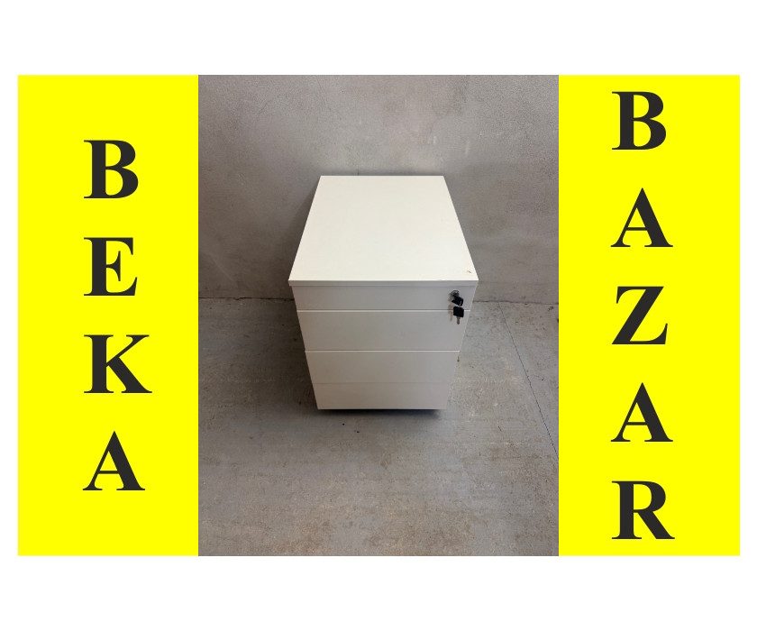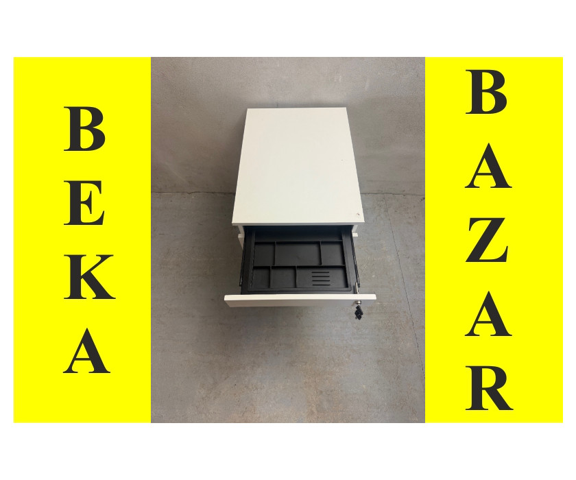 Ponúkame na predaj kancelársky kontajner na kolieskach. Kontajner je celoplechový v bielej farbe. Celkom má 4 šuplíky, prvá je plastová úzka na drobné veci a zvyšok plechové. Niektoré šuplíky majú kľúč.