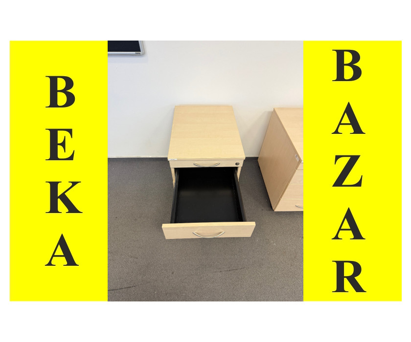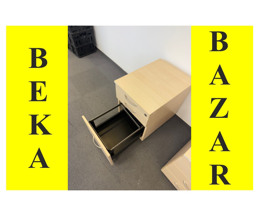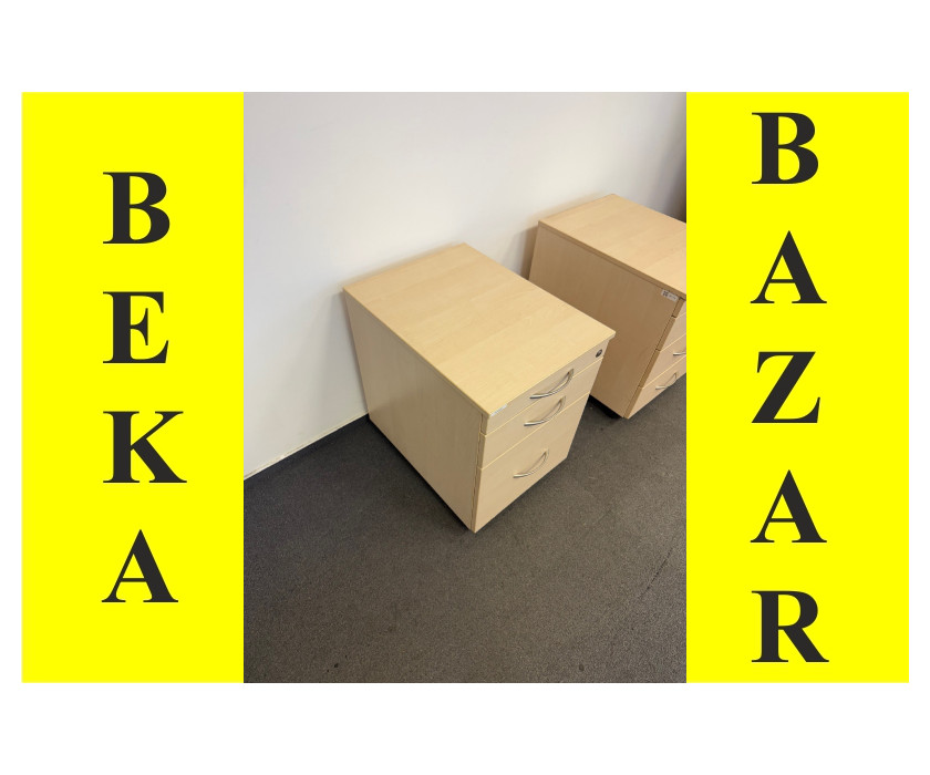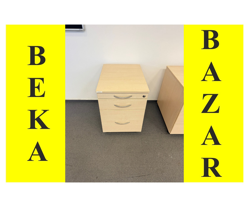 Ponúkame na predaj kancelársky kontajner vo svetlom dekore. Kontajner má 3 šuplíky, prvý je plastový, druhý je plechový a tretí je plechový s možnosťou využitia na závesné šanóny. Niektoré majú kľúč a všetky sú v dobrom stave.