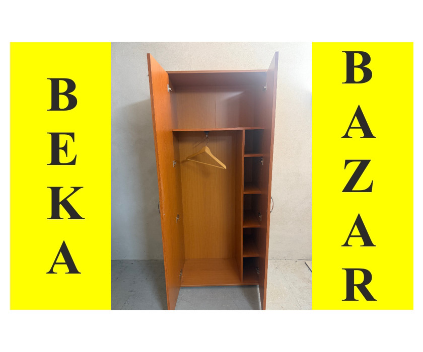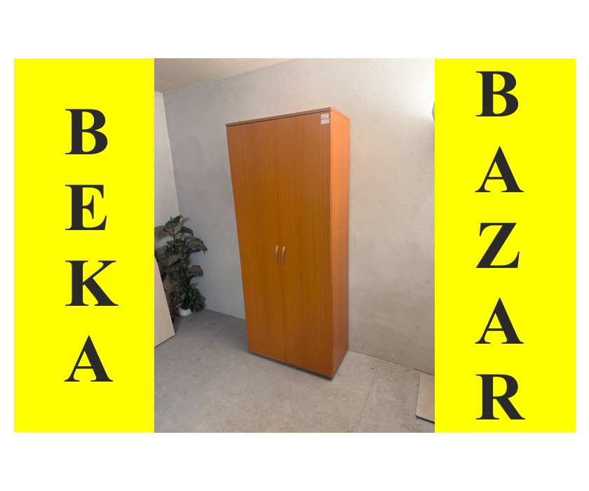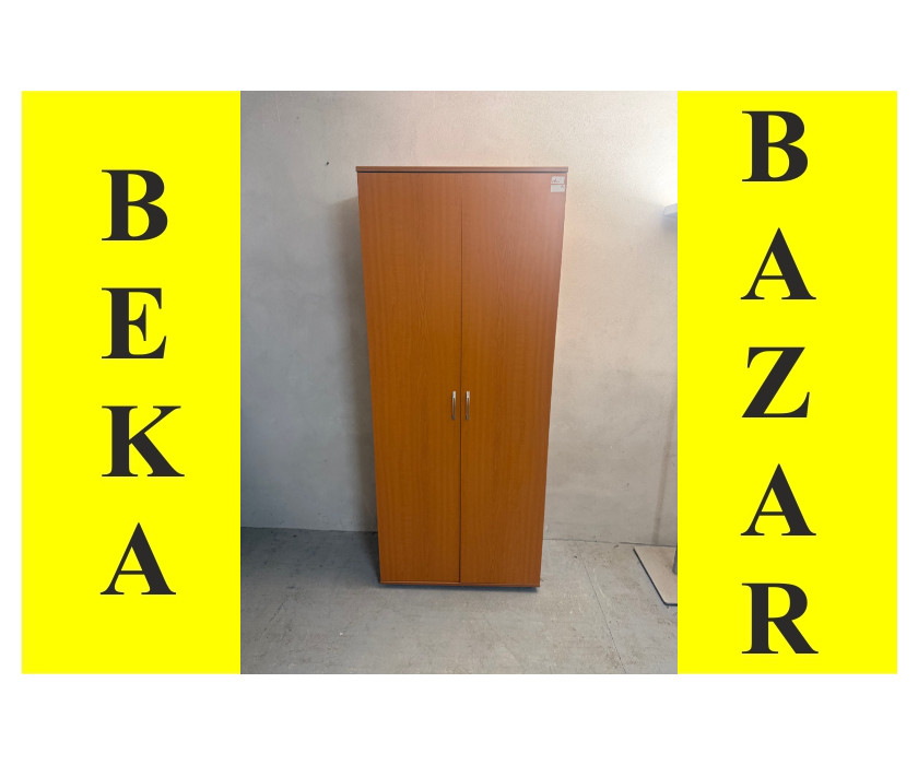 Na predaj ponúkame kancelársku šatníkovú skriňu od výrobcu značky Hobis. Skriňa je v dekore čerešňa. Dvere skrine majú hliníkové rukoväte, sú originál bez zámku. Vnútri skrine je šatníkový pojazd na ramienka, jedna vrchná polica a na boku skrine sú 4 poličky. Skriňa má vyrovnávacie nožičky a je v dobrom stave.