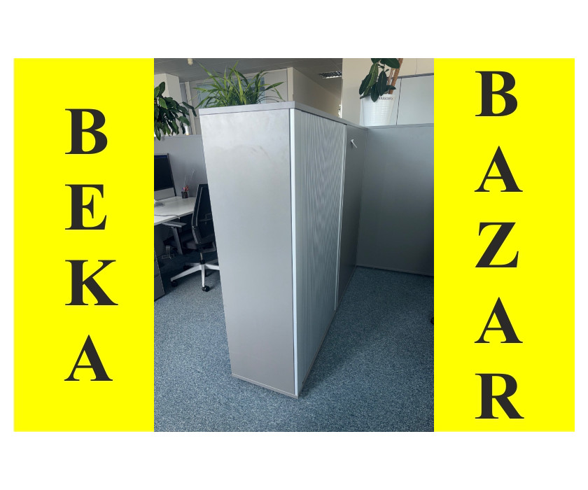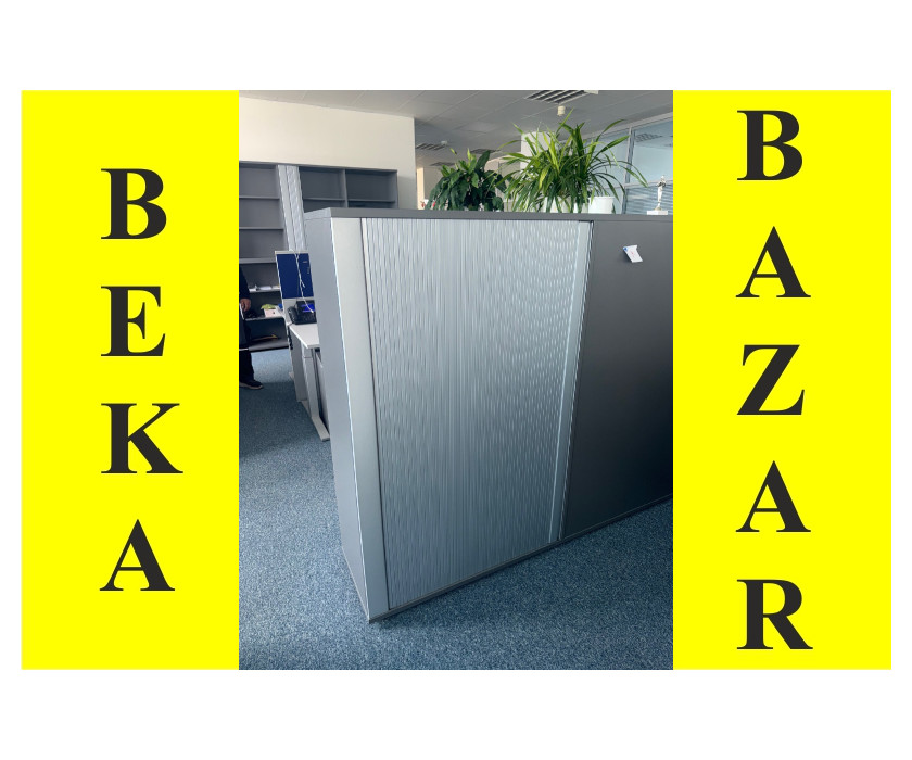Na predaj ponúkame kancelársku roletovú skriňu Bene v šedom dekore. Skriňa má plastovú roletku originál bez zámku. Vnútri skrine sú 3 police a skriňa má vyrovnávacie nožičky.