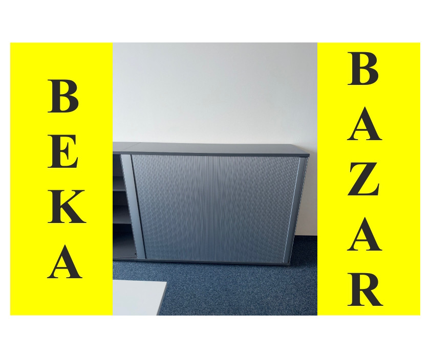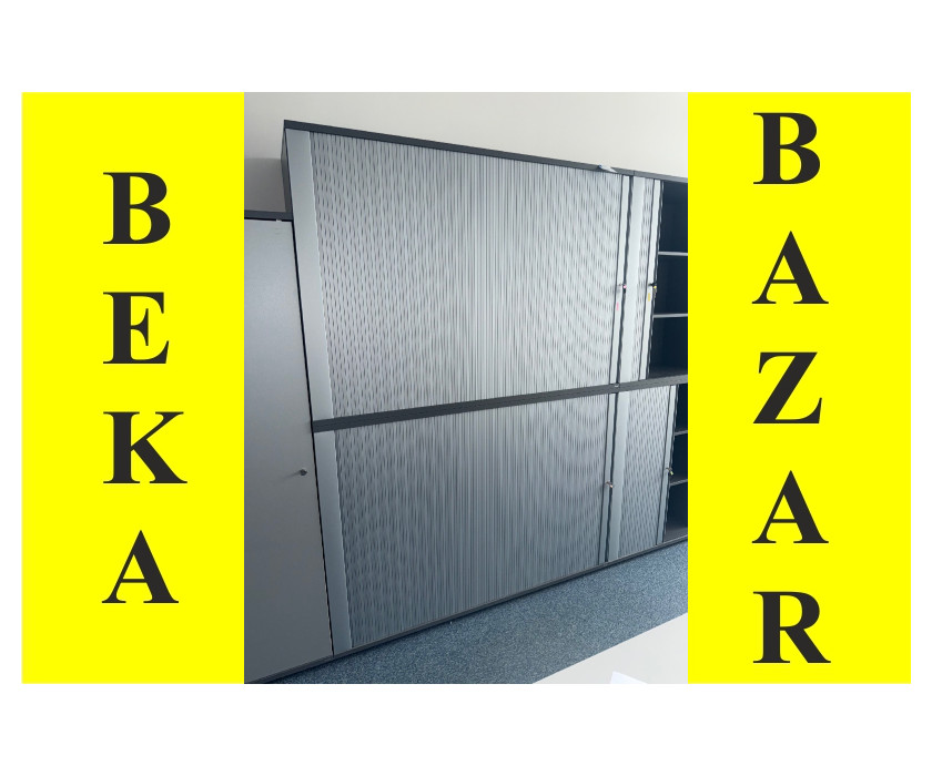 Na predaj ponúkame kancelársku skriňu Bene v šedom dekore. Skriňa má plastovú roletku so zámkom a kľúčom. Vnútri skrine sú 4 police a skriňa má vyrovnávacie nožičky.