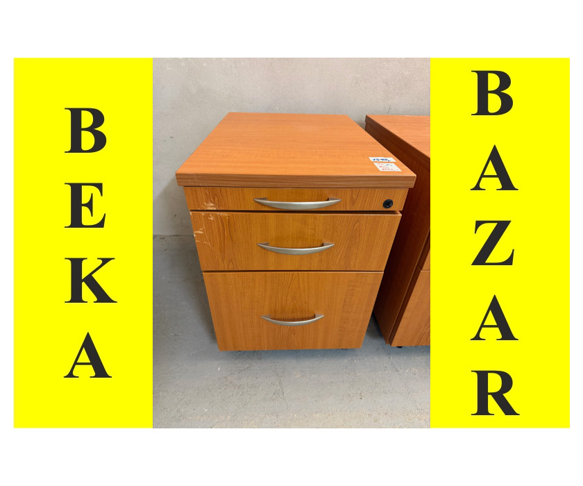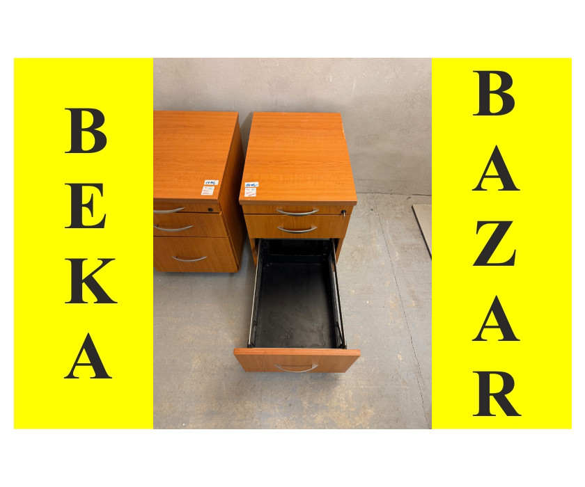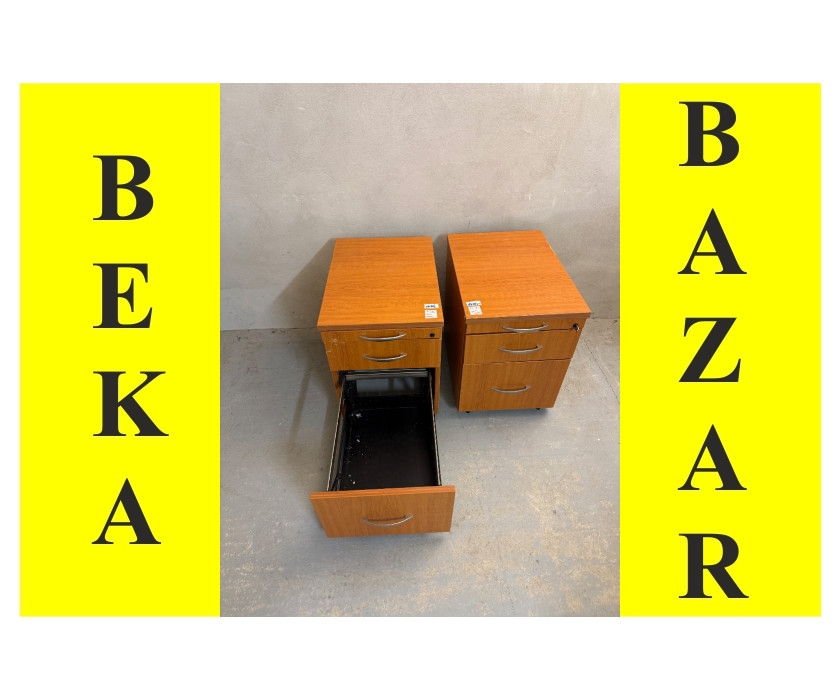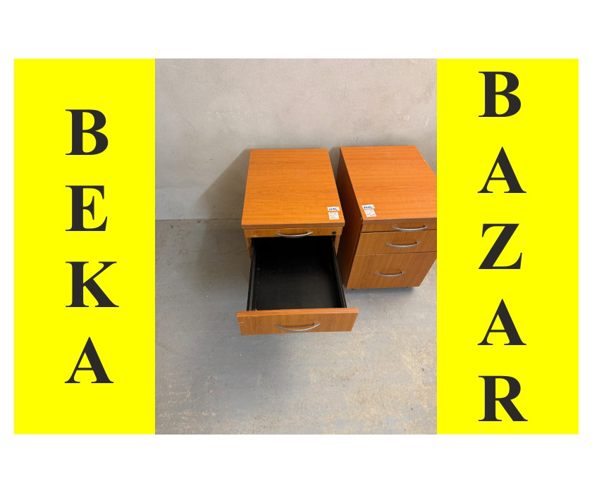 Na predaj ponúkame 2 kancelárske kontajnery pod stôl. Kontajnery sú v dekore čerešňa a vzhľadom na drobné poškodenie (odretie) ich ponúkame za zníženú cenu. Jeden kontajner má kľúč, druhý nie. Oba kontajnery majú prvý šuplík z plastu a zvyšok z plechu. Šuplíky majú plastové rukoväte, majú kolieska a pri oboch kontajneroch má spodný šuplík dno, je teda nielen na závesné šanóny, ale dá sa použiť aj ako klasický šuplík.