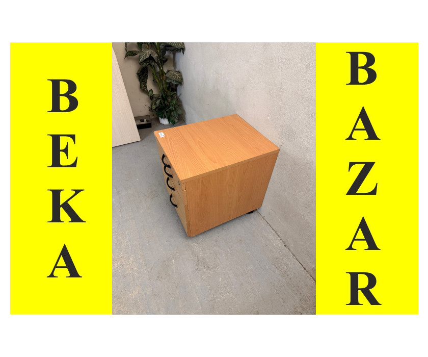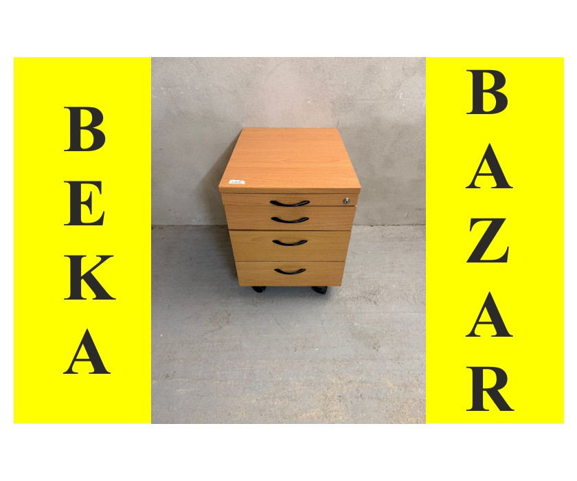 Ponúkame na predaj kancelársky kontajner v dekore buk. Kontajner má 4 šuplíky, všetky z plastu. Prvý šuplík je úzky na drobné veci. Kontajner má kolieska s aretáciou, plastové rukoväte a niektoré z dostupných majú kľúč.