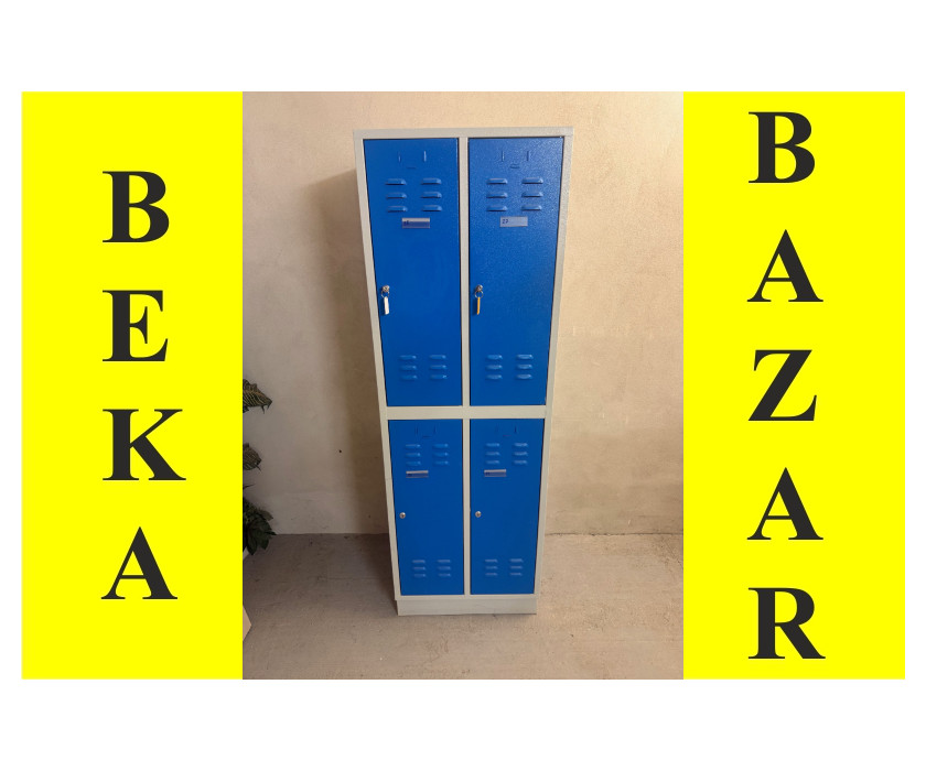 Na predaj plechová šatníková skriňa vhodná pre 4 osoby. Skriňa má šedý korpus, dvere modré, dvere s kľúčom. Vnútri každej skrinky je jedna polička, skriňa má kovový sokel. Celkovo je skriňa v peknom stave.