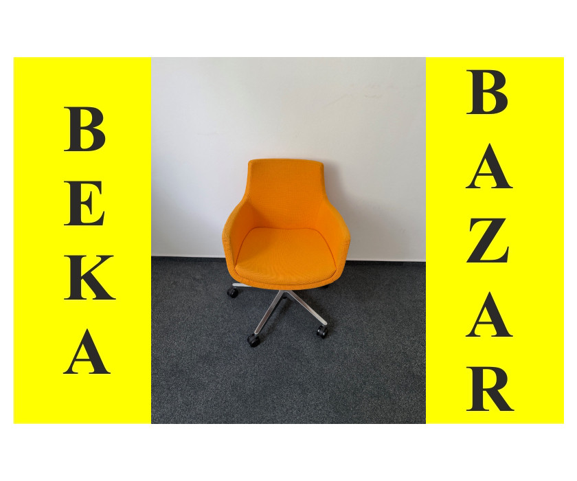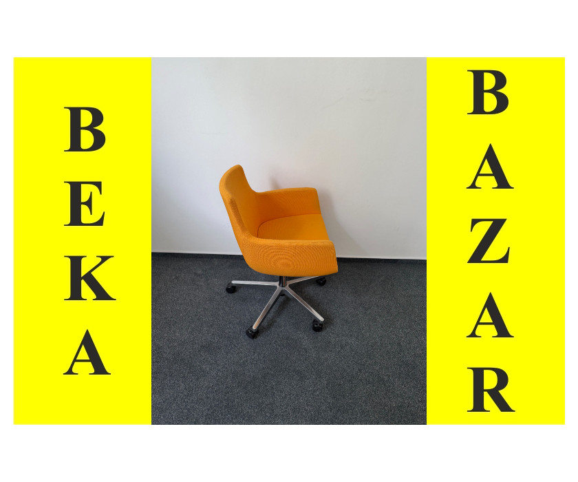 Na predaj ponúkame kancelárske prísediace kreslo v žltej farbe. Kreslo má kovový 5-bodový kríž s kolieskami. Dá sa výškovo nastaviť a je v dobrom stave.
