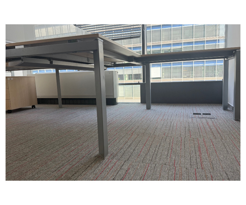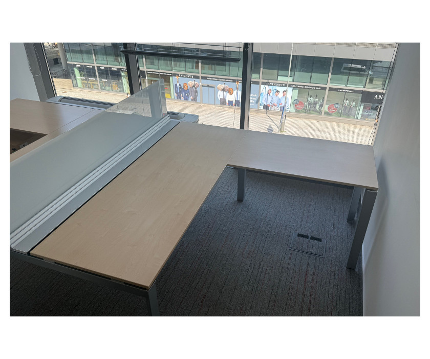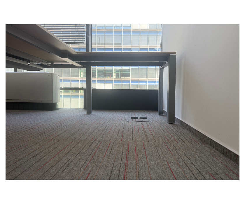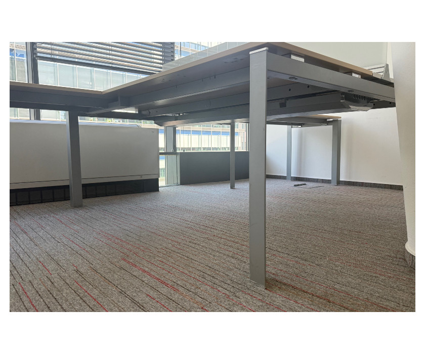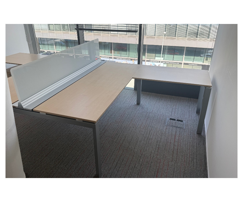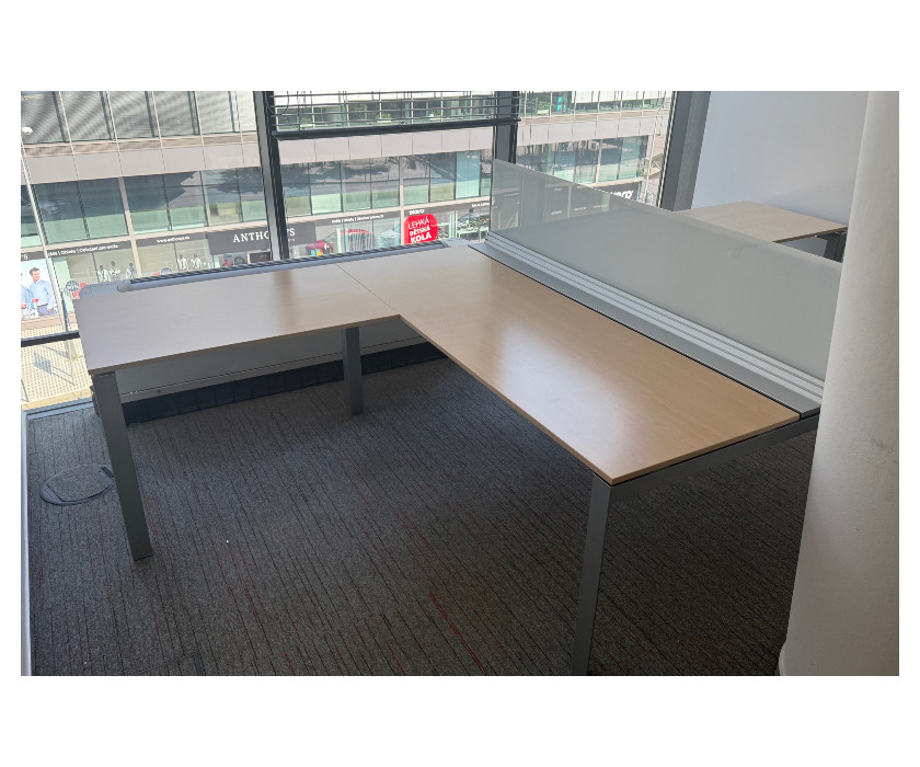 Na predaj ponúkame kancelársky PC dvojstôl do L . Stôl má kovovú konštrukciu, paravány sú plastové s hliníkovými lištami. Stôl je v jednom kuse, nedá sa rozrobiť na dve časti. Nohy stola majú vyrovnávacie nožičky a celkovo je stôl veľmi pekný av skvelom stave.