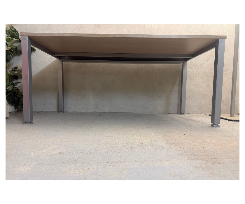 Na predaj ponúkame kancelársky PC stôl v dekore agát. Stôl má kovovú konštrukciu a skrutkovacie, výškovo nastaviteľné nožičky. Pod doskou je držiak káblov. Celkovo je stôl v dobrom stave. Doska stola je hrubá 2,5 cm a má jednu záslepku na pretiahnutie káblov.